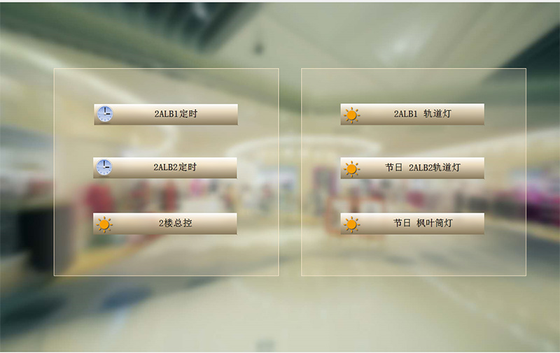 智能照明公共照明控制界面見下圖,主要實現公共照明控制,可統一控制,也可單獨控制,控制狀態可在界面上直接顯示出來,同時可以設置各照明回路自動亮滅時間。