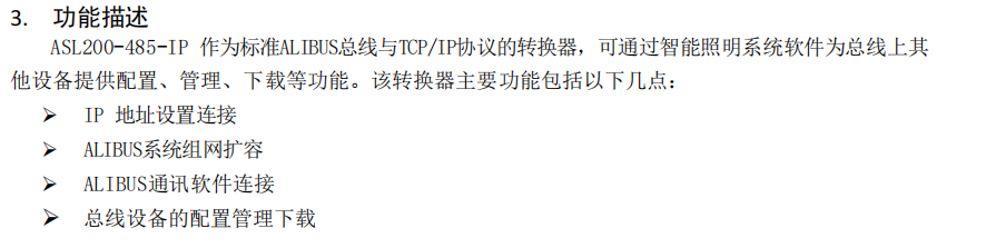 ALIBUS 系列IP協(xié)議轉換器ASL200-485-IP(以下簡稱轉換器),作為 ALIBUS 智能照明控制的系統(tǒng)輔件,和驅動器、智能面板、傳感器等其他模塊組成一套完整的控制系統(tǒng),在大型公建、樓宇照明的智能控制中,起到協(xié)議轉換、過濾報文、降低總線負載,擴展系統(tǒng)容量的作用,確保系統(tǒng)控制的穩(wěn)定與高效。該模塊采用先進的單片機技術,具有高穩(wěn)定性、高可靠性。