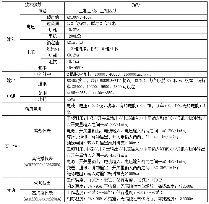 技術要求:輸入電壓三相AC380V;電流變比100A/5A;接線方式三相四線;準確度0.5級。