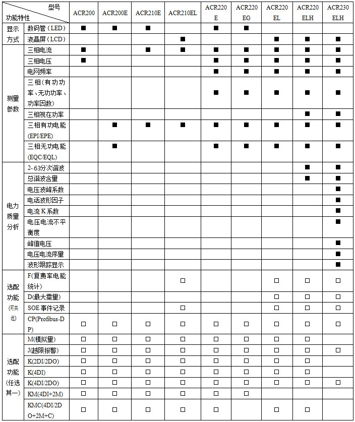 注:“■”為標配功能,“□”為選配功能。