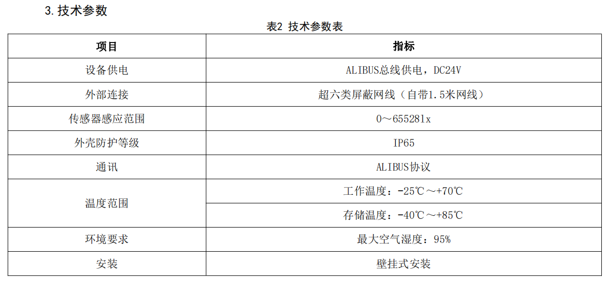 智能照明戶外照度傳感器 發布來源:http://www.smtsq.cn/supply/202.html 發布時間:2022/12/30 0:00:00 1.概述 ALIBUS 智能照明戶外照度傳感器(以下簡稱傳感器),是安科瑞 ALIBUS 智能照明控制系統的輸入模塊。該模塊和其他模塊(諸如智能面板、開關驅動器等)連接到一起,組成一套完整的控制系統,實現大型公建、樓宇、道路與隧道照明系統的智能控制。 該傳感器作為輸入模塊,可以檢測日光照度,并依照預設的邏輯發送照度值至照明配電箱(柜)內的驅動器,從而實現照明的自動控制與調節。 上一篇:智能照明開關面板 下一篇:智能照明傳感器