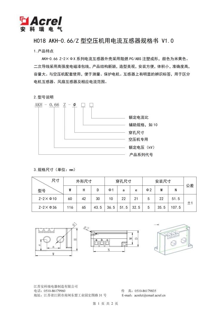 安科瑞AKH-0.66/Z型空壓機(jī)用電流互感器