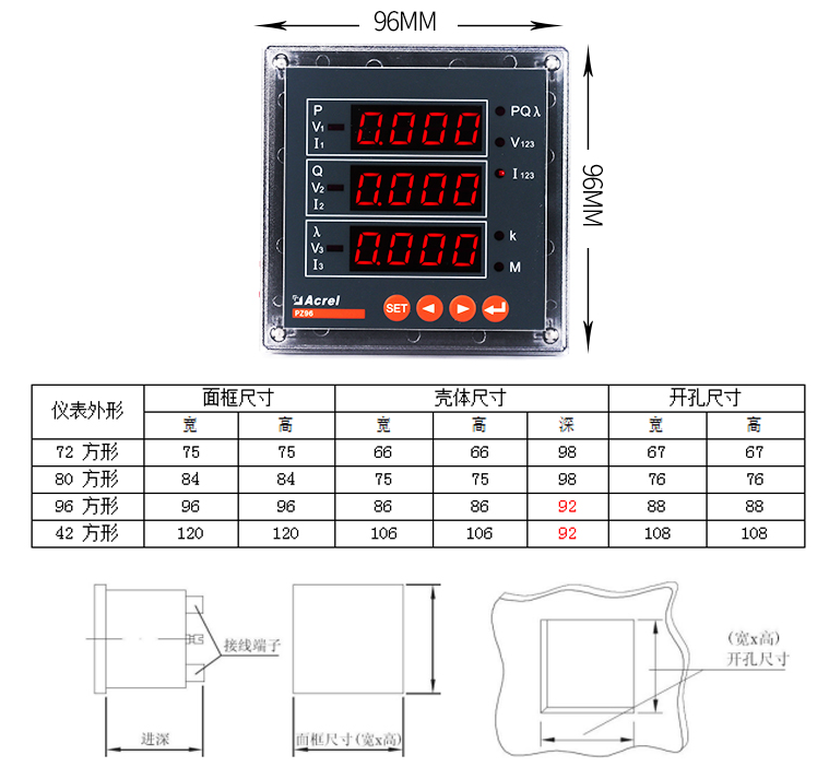 該系列儀表采用交流采樣技術,能分別測量電網中的電流、電壓、功率、功率因數和電能等參數。可帶RS485通訊接口、模擬量數據轉換、開關量輸入/輸出等功能,實現電力參數、電氣元件工作狀態的遠程傳輸,便于后臺監控系統集中檢測。