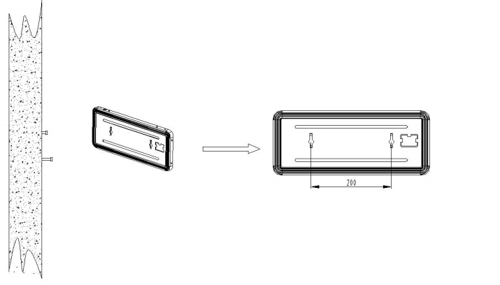 先將塑料膨脹管和螺釘固定到墻上,再將標志燈具背板上的壁掛固定孔對準螺釘后,掛于墻上,實現壁掛式安裝,如圖 所示。