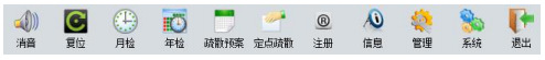 工具欄圖標(biāo)如圖5所示,消音:用于關(guān)閉報(bào)警提示聲音;復(fù)位:將處于非正常狀態(tài)下的監(jiān)控系統(tǒng)復(fù)位至正常