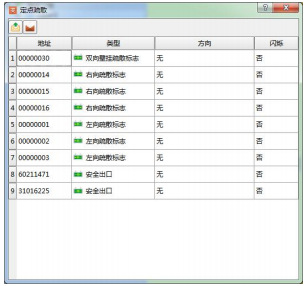 定點(diǎn)疏散功能允許有管理員權(quán)限的用戶在緊急情況下手動(dòng)啟動(dòng)報(bào)警點(diǎn),根據(jù)實(shí)際火警信息提供疏散預(yù)案以外的疏散路徑。在工具欄中點(diǎn)擊“定點(diǎn)疏散”,如圖11所示,可對(duì)當(dāng)前圖層設(shè)備點(diǎn)進(jìn)行手動(dòng)點(diǎn)亮。在“方向”一欄雙擊,可選擇指示燈點(diǎn)亮方向;在“閃爍”一欄雙擊,可選擇燈具是否閃亮,默認(rèn)為長(zhǎng)亮。允許同時(shí)對(duì)多個(gè)設(shè)備設(shè)置點(diǎn)亮方向和閃亮模式。