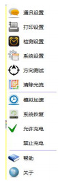 系統(tǒng)設(shè)置子菜單如圖18所示。該頁(yè)面可進(jìn)行通訊設(shè)置、打印設(shè)置、檢測(cè)設(shè)置、系統(tǒng)設(shè)置、燈具方向測(cè)試及清除光流。