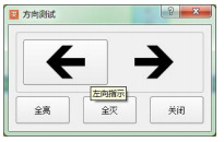方向測(cè)試窗口如圖21所示,是為了檢測(cè)指示燈具安裝方向的正確性和一致性,即指示燈具安裝完成后,需檢查指示燈具安裝的方向與定義的方向是否一致。直接單擊某個(gè)方向,該方向的箭頭將變?yōu)榫G色,同時(shí)該方向的指示燈應(yīng)全部點(diǎn)亮。