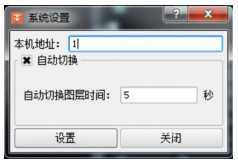 系統(tǒng)設(shè)置窗口如圖22所示,可設(shè)置當(dāng)前本機(jī)的地址編號(hào)和圖層的自動(dòng)切換及時(shí)間。本機(jī)地址編號(hào)用于CAN通訊地址設(shè)定;自動(dòng)圖層的切換,則可以查看不同的疏散分區(qū)狀態(tài)。