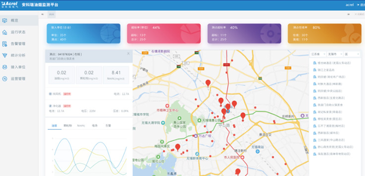 為了彌補(bǔ)現(xiàn)存餐飲行業(yè)在煙油監(jiān)測(cè)上的漏洞,同時(shí)便利監(jiān)管部門(mén)的監(jiān)察,安科瑞油煙監(jiān)測(cè)云平臺(tái)應(yīng)運(yùn)而生。油煙監(jiān)測(cè)模塊通過(guò)2G/4G與云端平臺(tái)進(jìn)行通信和數(shù)據(jù)交互,系統(tǒng)能夠?qū)ζ髽I(yè)餐飲設(shè)備的開(kāi)機(jī)狀態(tài)、運(yùn)行狀態(tài)進(jìn)行監(jiān)控;實(shí)現(xiàn)開(kāi)機(jī)率監(jiān)測(cè),凈化效率監(jiān)測(cè),設(shè)施停運(yùn)告警,待清洗告警,異常告警等功能;對(duì)采集數(shù)據(jù)進(jìn)行統(tǒng)計(jì)分析、排名等統(tǒng)計(jì)功能;較之傳統(tǒng)的靜電監(jiān)測(cè)方案,更具安全性和實(shí)效性。