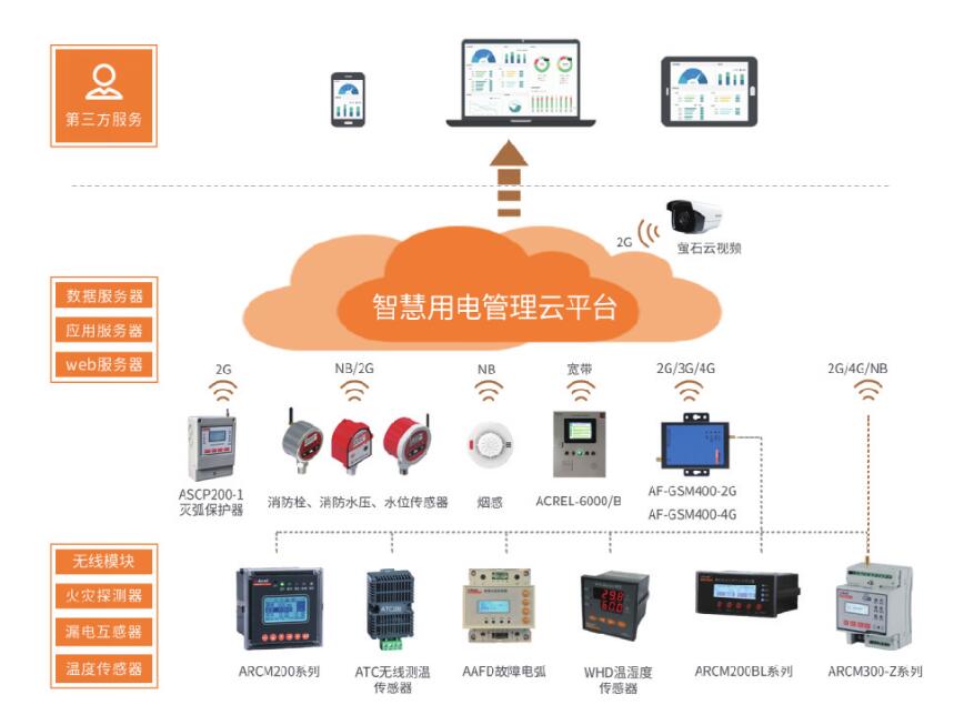 安科瑞指導(dǎo)用戶完成如電氣火災(zāi)探測器、剩余電流互感器、溫度傳感器、無線模塊等的安裝和調(diào)試,用戶將數(shù)據(jù)上傳至安科瑞智慧用電監(jiān)控預(yù)警平臺,委托安科瑞管理,按規(guī)定/約定收取軟件基礎(chǔ)費用和托管費用。