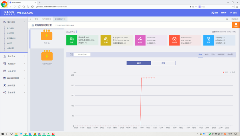 實時變壓器曲線可監測變壓器的狀態,某天的電壓、電流、功率、用電量等曲線信息。